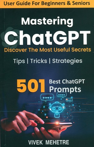 ChatGPT is a powerful new tool that can be used for a variety of purposes, from learning new things to being more productive at work. In this book, you will learn how to use ChatGPT to its full potential. This book is a must-read for anyone looking to take advantage of the latest technological advancements in artificial intelligence. The author,Vivek Mehetre is an expert in AI, has created a comprehensive guide that takes readers through the various applications of ChatGPT in their everyday lives. The book is well-organized, with each chapter focusing on a specific topic, and is filled with practical advice, 501 Best Prompts and tips that can be easily implemented. You will learn how to: Give ChatGPT clear and concise instructions Use natural language to communicate with ChatGPT Provide examples to help ChatGPT understand what you are looking for Give feedback to help ChatGPT improve You will also learn about the ethical implications of using ChatGPT, and how to use it in a responsible way. By the end of this book, you will be an expert in using ChatGPT You will be able to use it to learn new things, be more productive at work, and be more creative. You will also be able to use it in a responsible way. Order your copy of “Mastering ChatGPT Discover The Most Useful Secrets Unlocking the Power of ChatGPT” (Practical Tips, Tricks, 501 Prompts & Strategies for Daily Application) today and start unlocking the power of ChatGPT